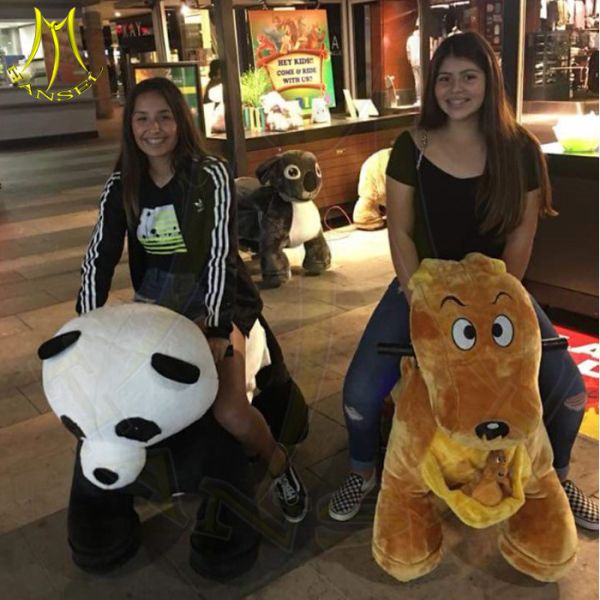 Hansel plush motorized animals are battery operated with coin or non coin type animals,it can walking in outdoor and indoor playground,with its attractive appearance to consumers and fast profits to the developer,more and more investors are join this business.it is available for shopping mall,amusement park,game center,parties,indoor or outdoor playground,ect.