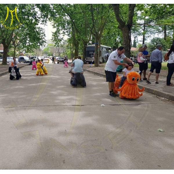 Plush motorized animal scooters is a one coin operated or non coin operated electric battery rides which look like real animals can moving with music. They work with rechargeable batteries, can go forward , turn left and right . They operate easily by the push of a button and move at walking speed making them easy to keep up with. They are the current trend for child amusement. These electric motorized animals are mobile and allow children to ride the animal of their preference in parks, shopping centers, game centers, playgrounds and zoos at a safe and regulated speed of preference. People in all ages like riding on it. Kids need to be 5 or 6 to ride on their own, but younger kids can ride with their siblings or with you. Both children and adults may ride these animals at the same time. The delight in kids is absolutely guaranteed! Most of our customers would like to share their happy time with us.